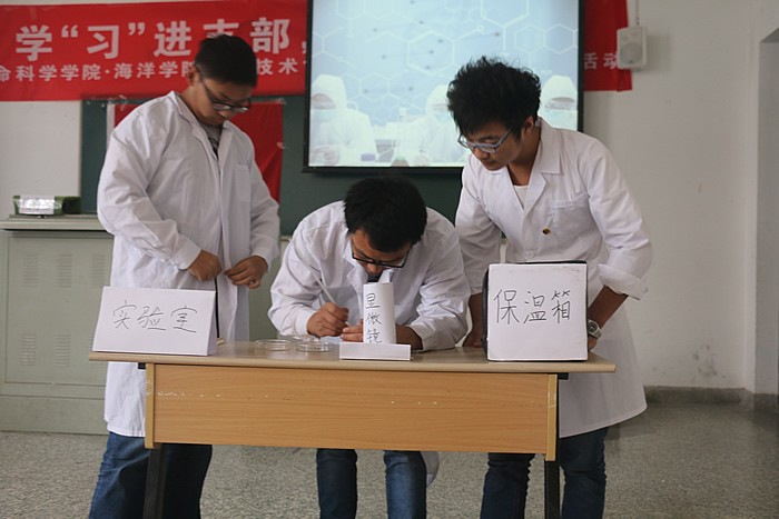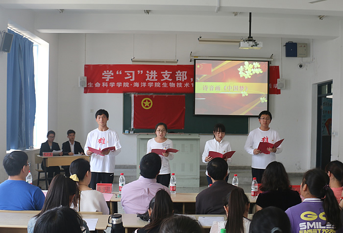 为弘扬“社会主义核心价值观”,继续深化我院“我的中国梦”主题教育,引导广大青年团员实现“四进”,5月20日下午,生物技术141、142团支部在主校区3号楼310举办了“学‘习’进支部,践行中国梦”主题团日活动,学工处丛茂华、校团委李安琪、校团委张国伟、学院关工委副主任陶锦昌、院党总支副书记副院长胡春花、院团委书记葛云等参加了观摩。