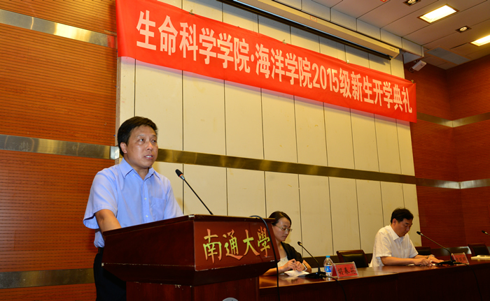 副院长姚登兵代表全院教职员工热烈欢迎2015级新同学的到来,介绍了英国上市公司官网365和365英国上市、海洋学院的概括及近年来取得的主要成绩,并向新同学提出“学会学习、学会思考、学会生活”的三点希望。