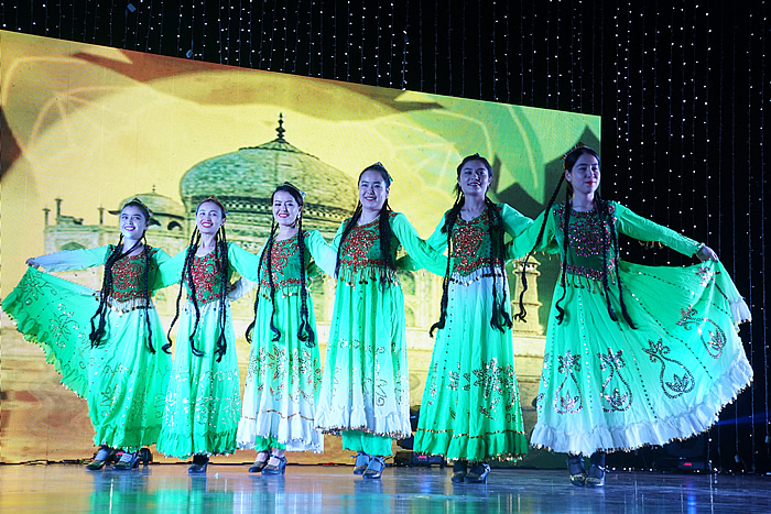 晚会现场,学院各年级学生上台演绎歌曲舞蹈、乐器演奏、相声小品,精彩节目将大家带入了美妙的艺术殿堂。能歌善舞、热情奔放的新疆姑娘和西藏小伙为大家带来新疆传统舞蹈《麦西莱普》、舞曲《Be My Lover》、藏舞《踏地狂舞》等极富民族风情的节目,为我们呈现了新疆人民和西藏人民深厚独特的历史文化和艺术形式。唯美动人的古典吟诵《春江花月夜》等节目给观众带来阳春白雪般的听觉和视觉享受。小小音乐剧《相亲相爱一家人》、相声《满腹经纶》、小品《TFGIRLS》温情幽默地展现学生成长过程中的点点滴滴。学生会主席团也给大家精心准备了暖心舞蹈《巡山舞》。