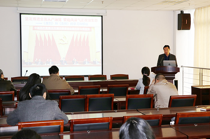 吉明明从制定《准则》和修改《条例》的重要意义、基本原则、准确把握《准则》的基本精神、准确把握《条例》的基本要求以及认真学习贯彻《准则》和《条例》的要求等五个方面作了深入的阐释。