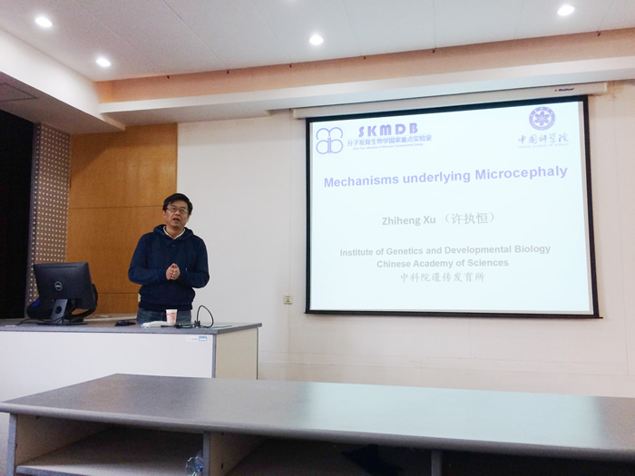 许执恒研究员作了《大脑发育与相关疾病的发病机制研究》的学术报告。许执恒研究员报告了JNK信号传导通路在神经发育和神经退行性疾病病理过程中的研究成果,还介绍了课题组关于寨卡病毒在小头畸形症患者研究中的最新进展。
