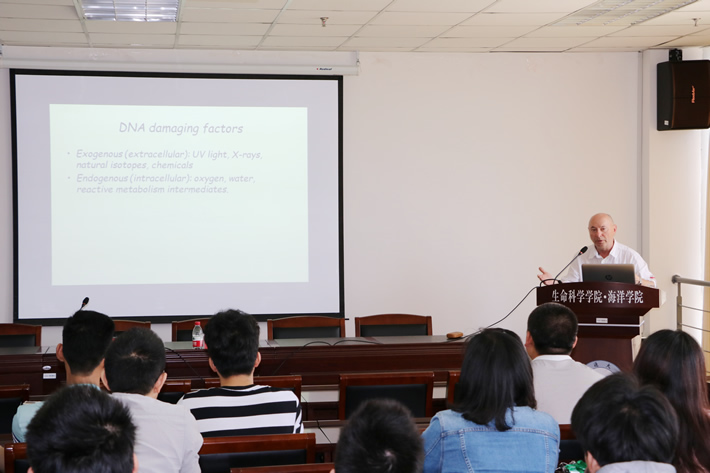 Dianov教授作了题为“DAN damage recogination, signaling, and repair”和“The role of XRCC1 in DNA damage and repair”两场学术报告。他主要介绍了由于外因和内因造成DNA损伤,人体细胞每天几乎发生105 DNA损伤,因此需要高效率的DNA修复系统进行损伤DNA修复,其中碱基切除系统在人体修复系统中起了重要作用。第二场报告主要介绍XRCC1在DNA修复过程中起了主要作用。XRCC1是一种支架蛋白,多个DNA修复蛋白与之结合。一旦XRCC1蛋白失活,将引起多种疾病。(陈心)