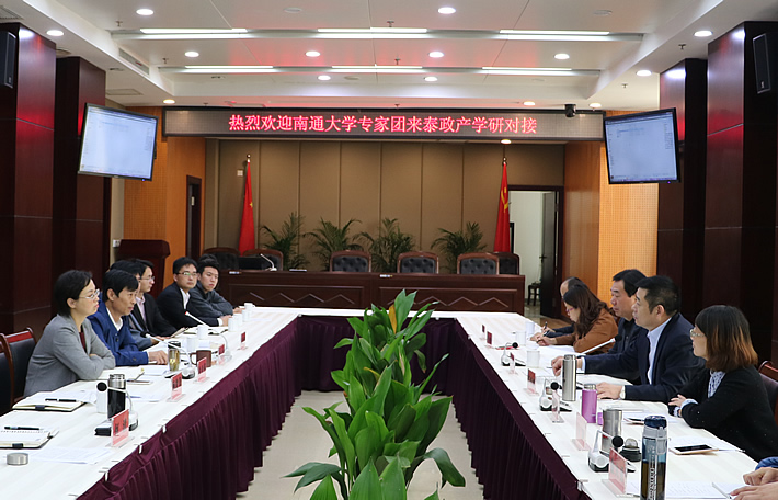 泰兴经济开发区致力于打造精细化工这一主要产业特色,被列为江苏省沿江开发十五个重点园区之一,初步形成了化工新材料、新能源、生物医药、油脂类食品加工、高端装备(海洋船舶工程)制造等产业链明晰的产业集群,呈现出“规模企业集聚、优势产品集中、主导产业集群”的发展格局。泰兴黄桥经济开发区是江苏省省级开发区,先后获得“国家国际科技合作基地”、“江苏省现代装备科技产业园”、“中国新型绿色纤维材料产业基地”等称号。泰兴经济开发区管委会主任吉勇详细介绍了园区的发展理念、发展目标、发展路径和远期规划并衷心希望我校专家教授充分发挥智囊团的作用,为泰兴社会经济发展提高智力支持。