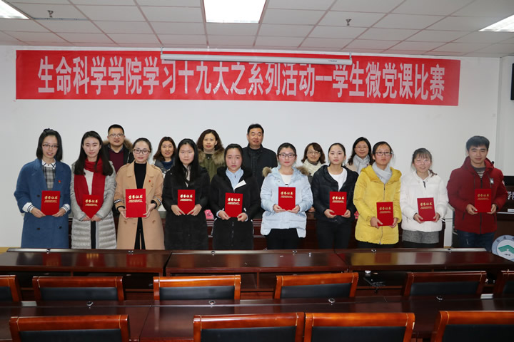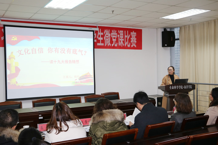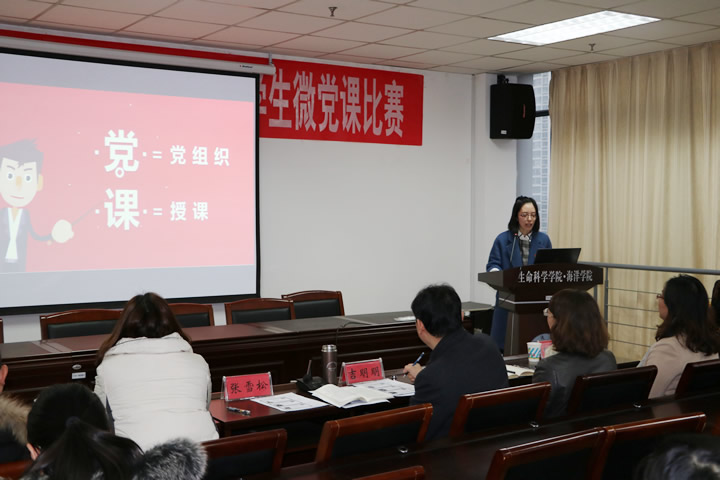 12月14日下午,365英国上市党总支学习党的十九大学生微党课比赛成功举行。学院三个学生支部的10名选手参与角逐。生科院总支书记吉明明、365英国处副处长张雪松、365英国上市党总支副书记胡春花光临指导。
