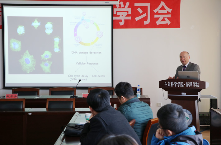 3月12日下午,牛津大学Grigory Dianov教授为我院和医学院师生作了题为“Cellular mechanisms of DNA damage surveillance and cancer avoidance”的报告。报告阐述了当DNA发生损伤时,细胞内就会启动一系列的分子机制对其进行修复,其中包括ATM、SP1、XRCC1等蛋白。如果修复不正确,细胞将发生癌变。