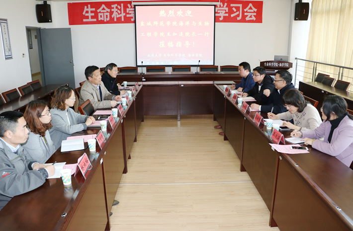 3月14日下午,盐城师范学院海洋与生物工程学院院长王加连教授一行五人,来我院交流工作。学院领导及各系主任参加了本次交流会。