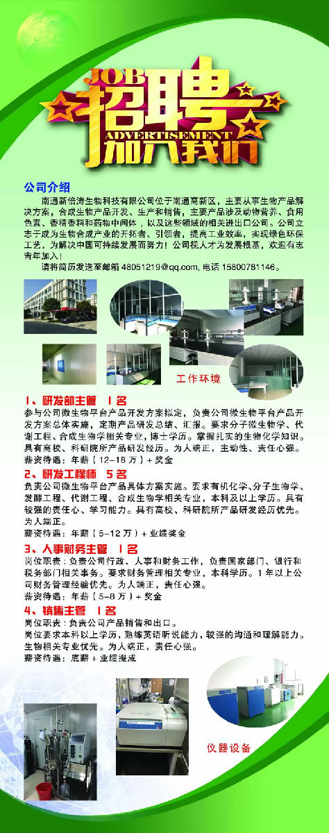 南通新倍涛生物科技有限公司招聘信息