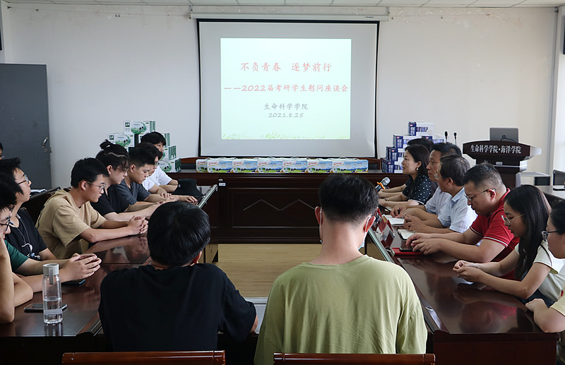 8月25日下午,365英国上市2022届考研学生慰问座谈会在学院会议室举行。院长姚登兵、副院长邓自发参加座谈会,院党委副书记、副院长金玲主持会议,全体辅导员和暑期留校复习考研学生参加座谈。