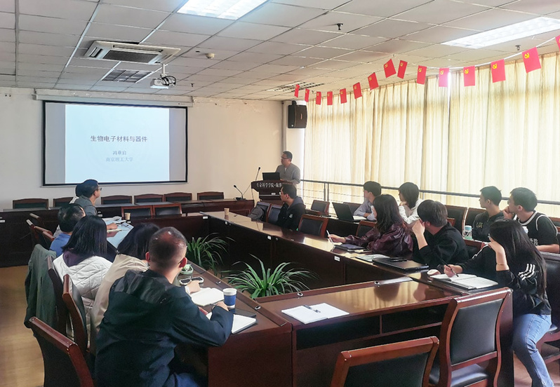 10月22日,南京理工大学博士生导师冯章启教授来我院交流并作了题为“生物电子材料与器件”的专题学术讲座。