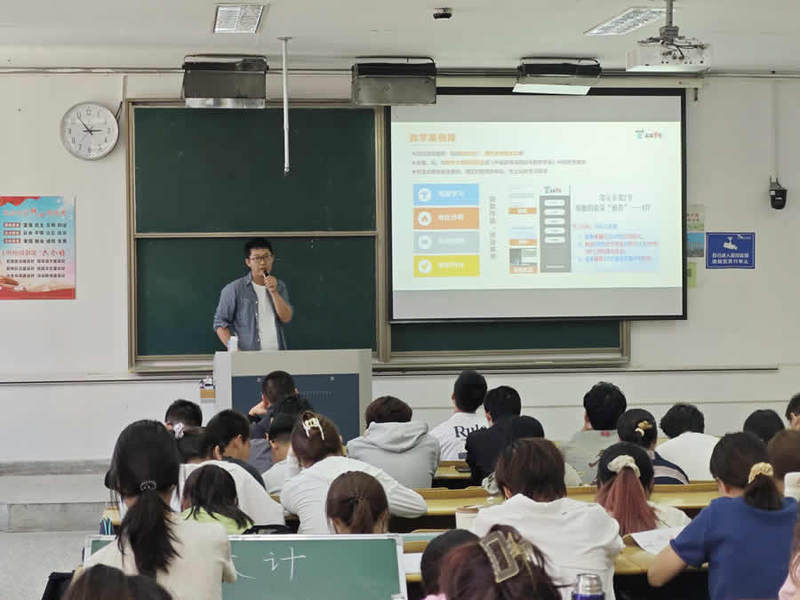 “未来学堂”陈伟伟老师作为主讲人,向在场的百余名学生介绍了“未来学堂”教育资源库及案例系统的资源内容及其应用,旨在帮助师范生们更好地利用教育资源,提升教学设计能力、教学拓展技能以及教具设计使用技能。此外,陈老师还强调了观摩微课示范库中的授课视频的重要性,进一步帮助师范生学会提炼教学中的“重点、难点”,做到在教学实践环节中重难点突出,从而提升教学技能。现场互动环节场面热烈,同学们积极踊跃回答问题。