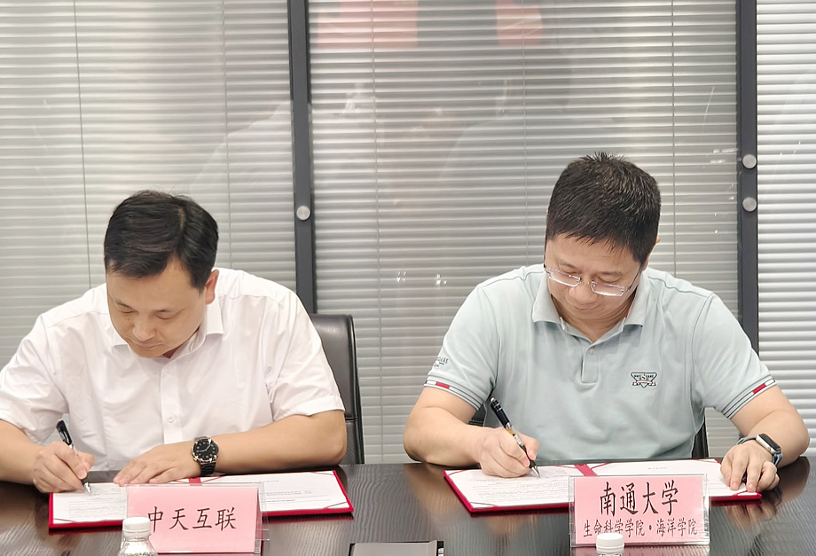 江苏中天互联科技有限公司副总经理申海元、智慧农业事业部总监王启浩、大区经理顾清华,365英国上市(海洋学院)院长助理钟非副教授、刘国元校聘副教授、院科研秘书杨婕参加了签约仪式。(钟非)