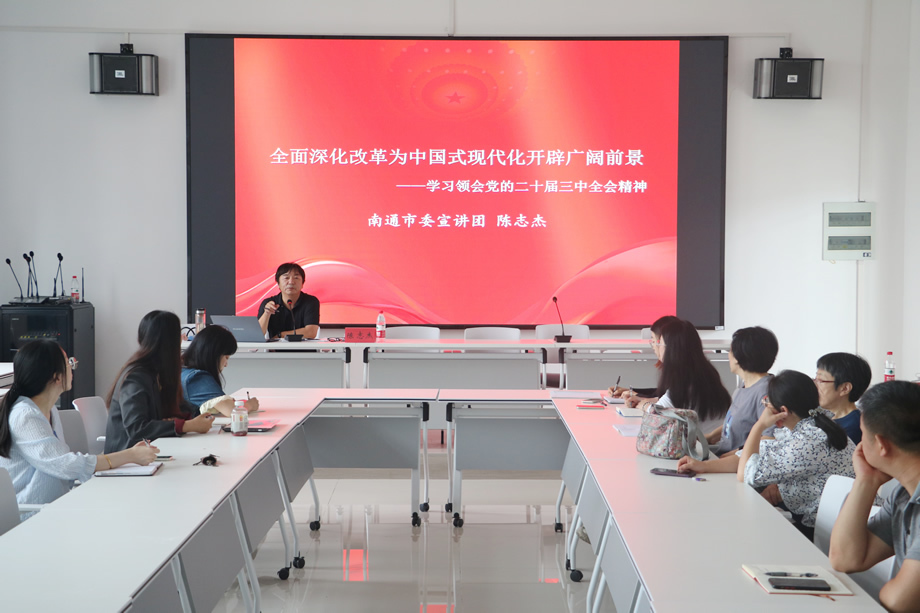 2024年9月25日,365英国上市举办学习贯彻党的二十届三中全会精神报告会,南通市委宣讲团成员、英国上市公司官网365马克思主义学院教授陈志杰来我院作了题为《全面深化改革为中国式现代化开辟广阔前景——学习领会党的二十届三中全会精神》的宣讲报告。学院党委书记季凌燕主持报告会。