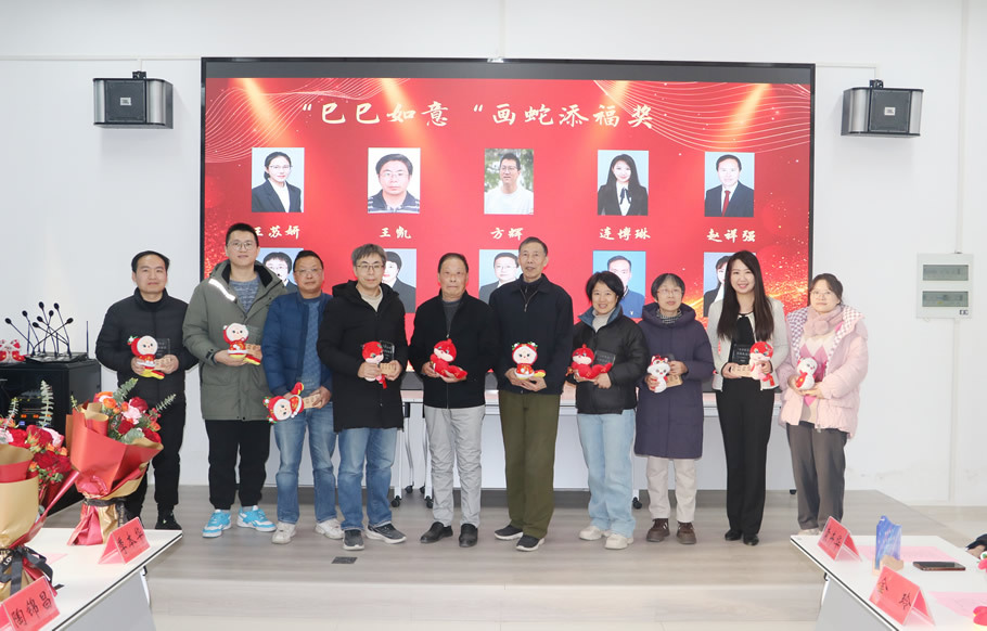 原学院院长季本华,书记陶锦昌、以及退休教师朱新宇为蛇年本命年的10位老师颁发“巳巳如意”画蛇添福奖杯,并送上祝福。老师们纷纷表示这是他们收到过的最特别的新年礼物,感受到来自学院的温暖和关怀,更加期待在新的一年里与学院共同成长。