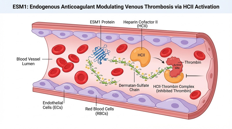 静脉血栓(VTE)是一种常见的血管疾病,与显著的发病率和死亡率相关。ESM1是一种由内皮细胞分泌的蛋白多糖,在VTE患者中水平显著升高,但其在凝血调节中的作用机制尚不清楚。该团队通过临床分析、动物模型实验和体外生化分析,全面研究了ESM1在抗凝血中的作用机制。研究发现,VTE患者血清中ESM1的浓度显著高于健康对照组,且ESM1与D-二聚体的联合检测能显著提高诊断准确性。通过斑马鱼和小鼠模型,团队发现ESM1的缺失会导致血管闭塞,而ESM1的过表达则能显著减少静脉血栓形成并延长闭塞时间。机制研究表明,ESM1的抗凝作用依赖于其共价连接的糖胺聚糖(GAGs),特别是通过激活抗凝血酶HCII来抑制凝血酶活性。该研究不仅揭示了ESM1在抗凝和静脉血栓保护中的新功能,还为开发新的抗凝治疗策略提供了理论基础。